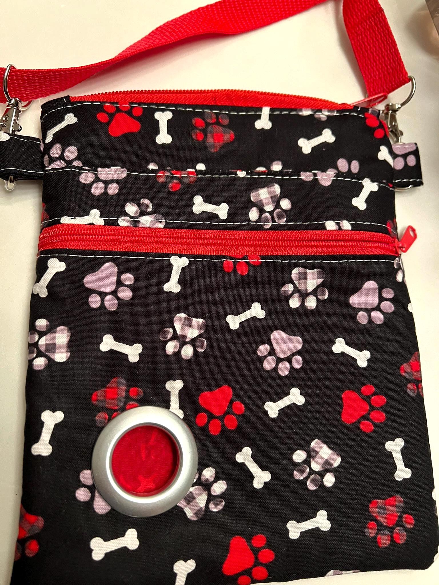 DogHandmade Dog Walker Crossbody Bag โ 4 Pockets, Treat Holder, Poop Bag Dispenser | Red Plaid Cotton