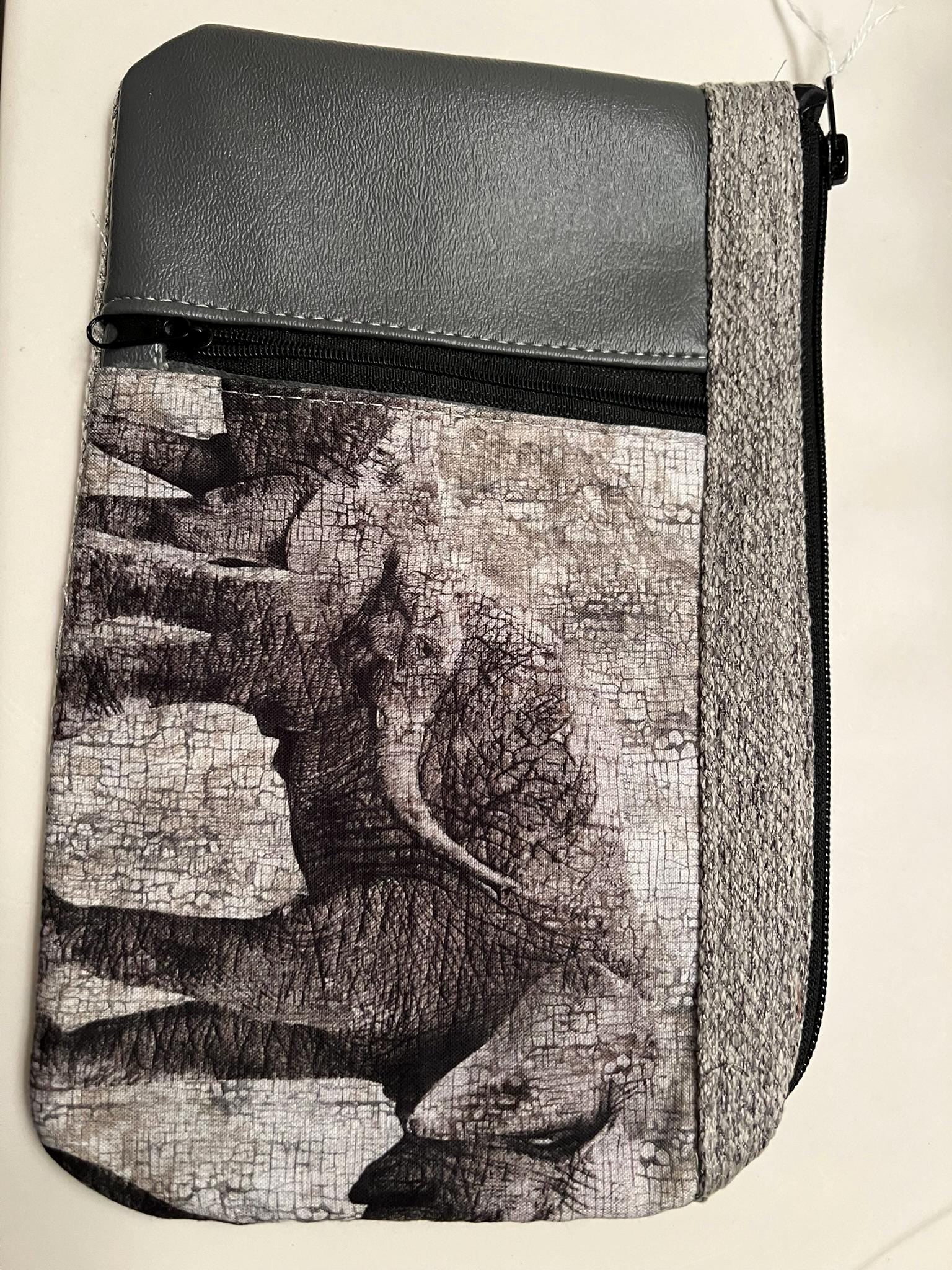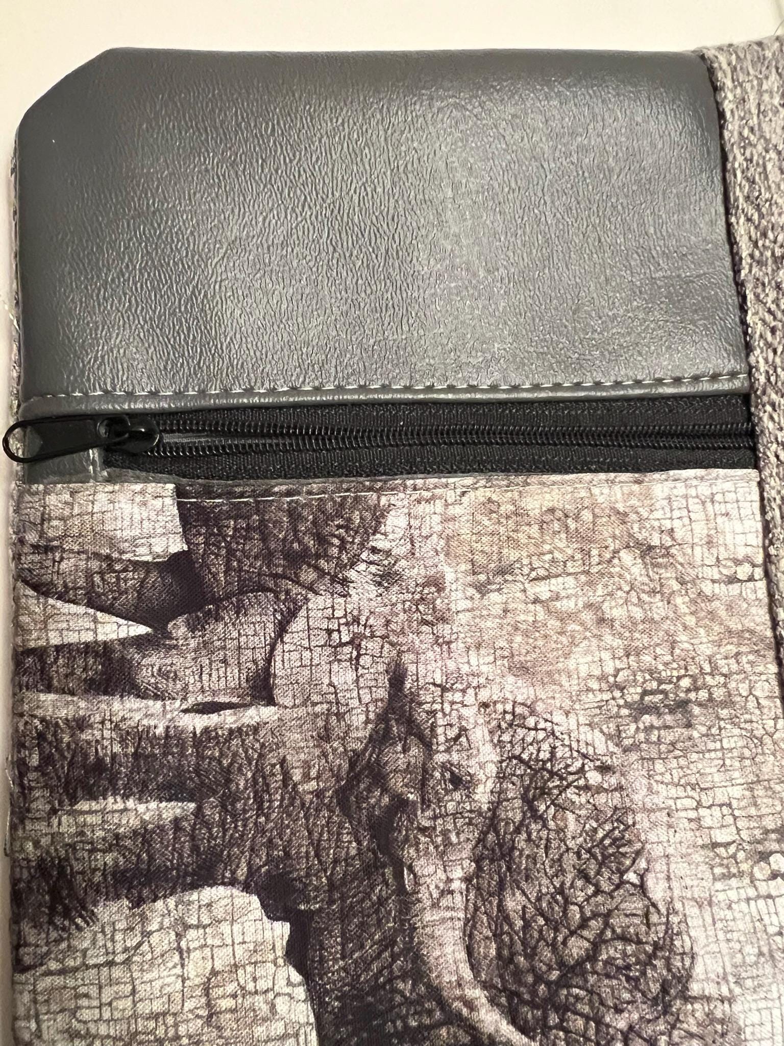 Elephant Zipper Clutch – 10x6” Gray Wildlife Purse with Faux Leather Trim | Safari Gift Handmade