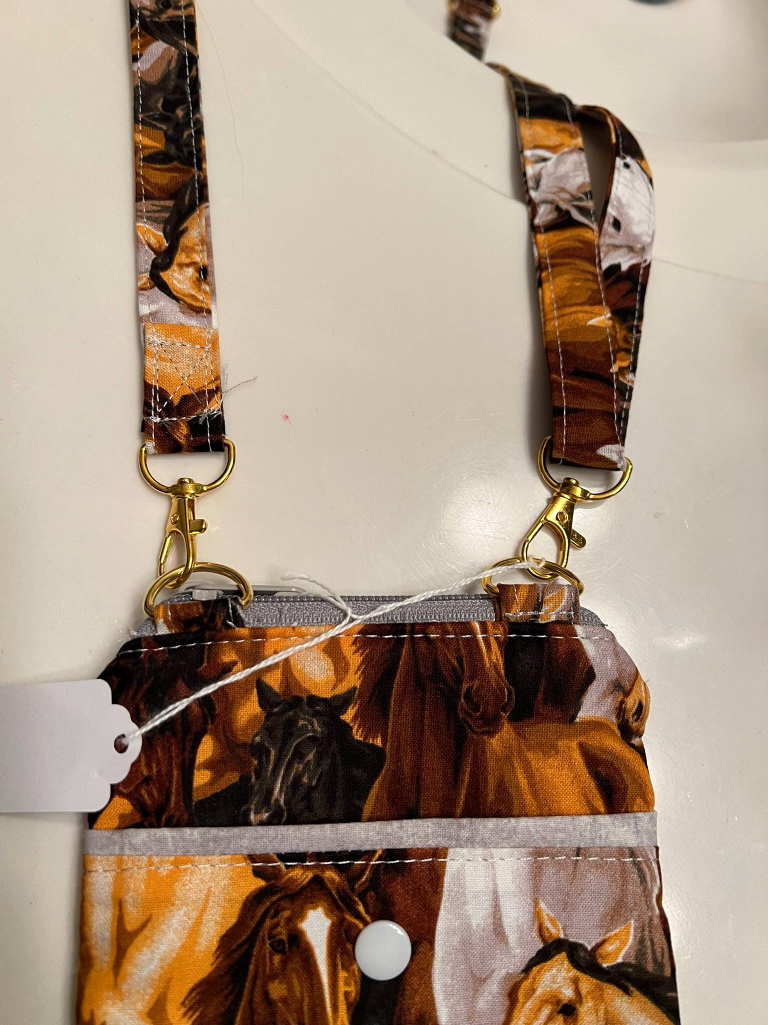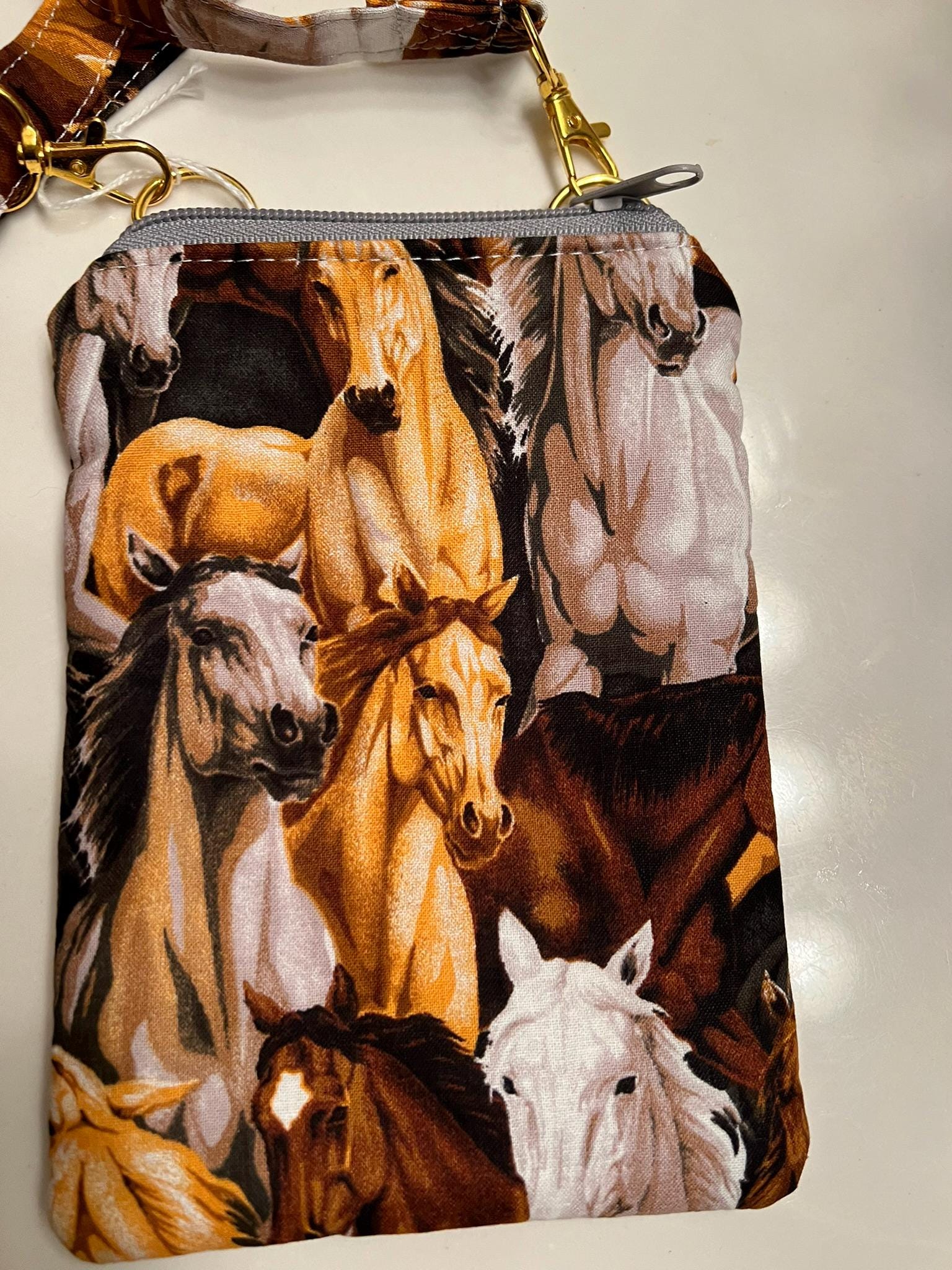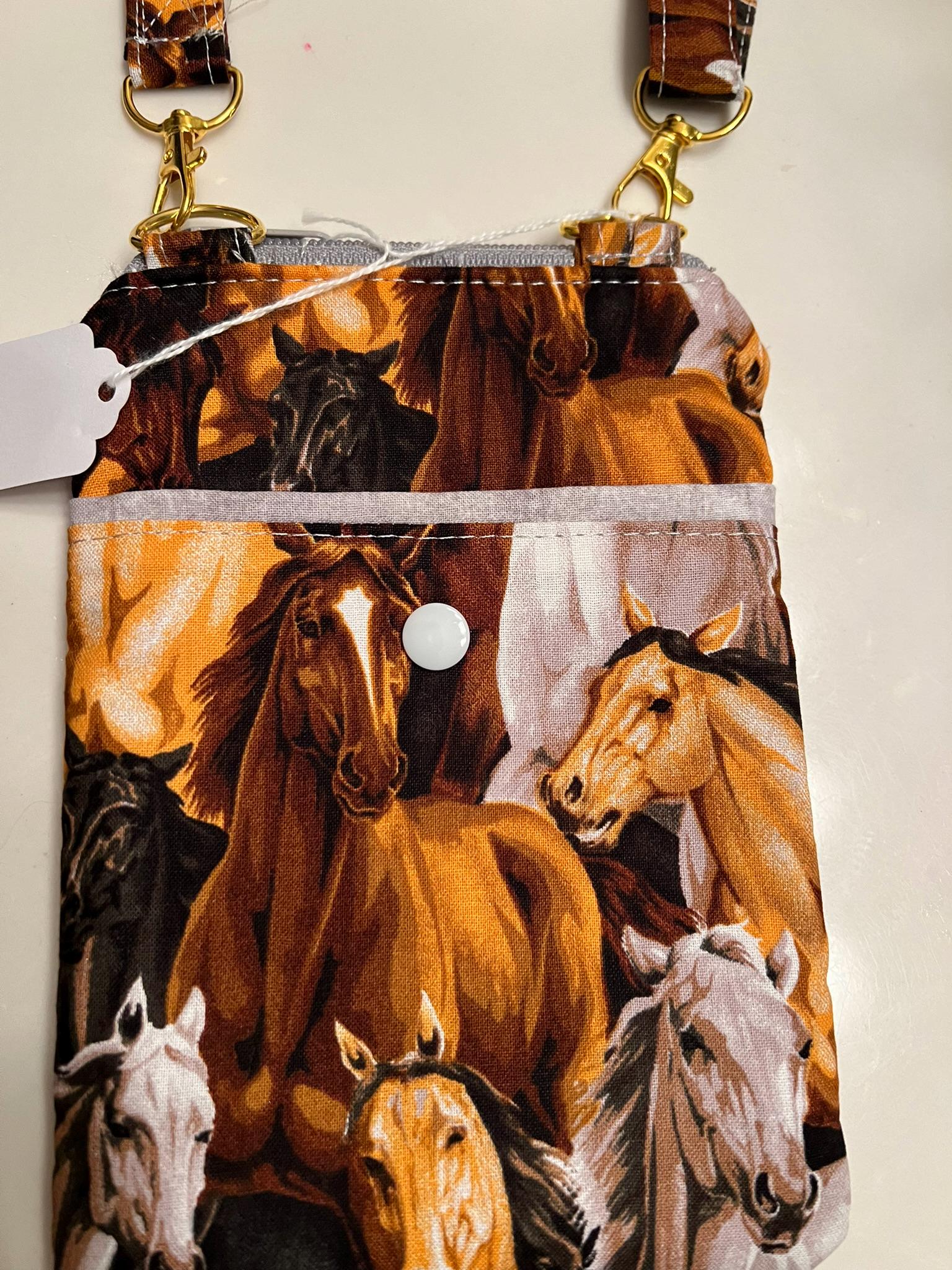 Horse Print Crossbody – 7x5” Phone Pouch with Zipper & Snap Pocket | Handmade