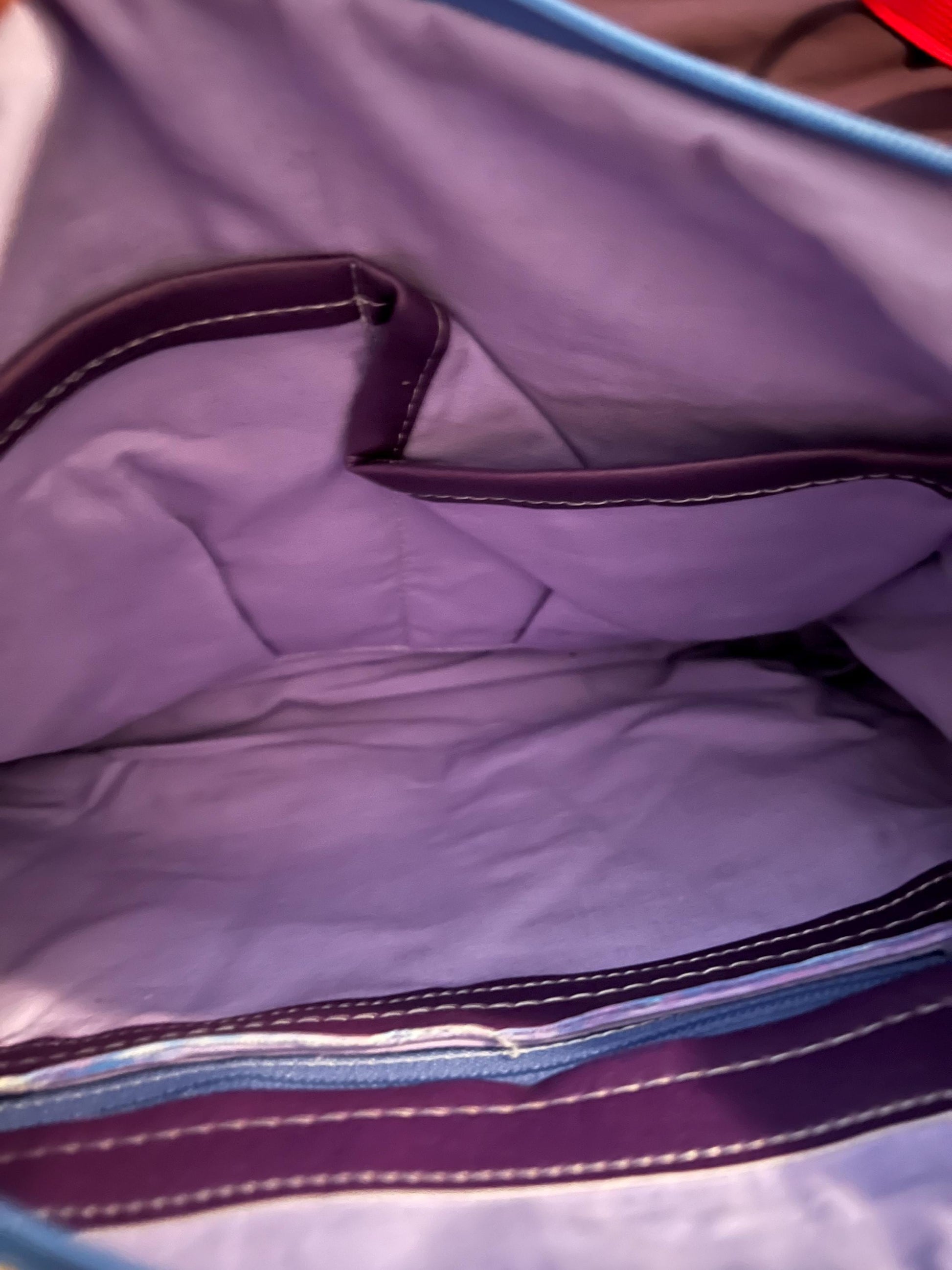 Interior: lilac cotton lining, 1 zip pocket, 2-section slip pocket