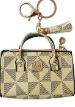 Y2K Triangle Checkered PU Leather Mini Coin Purse Keychain Cream – Bag Charm Accessory in 3 Colors