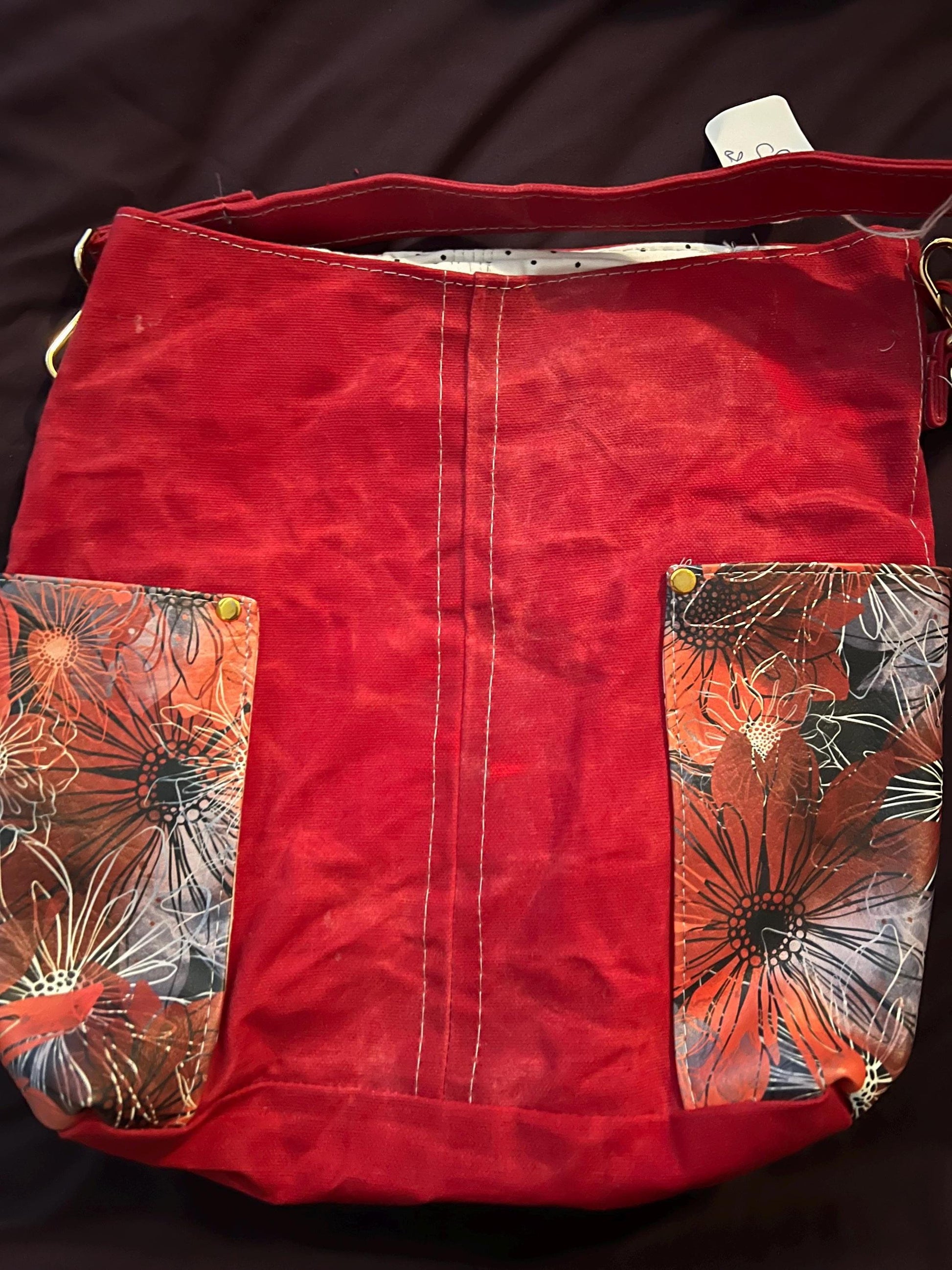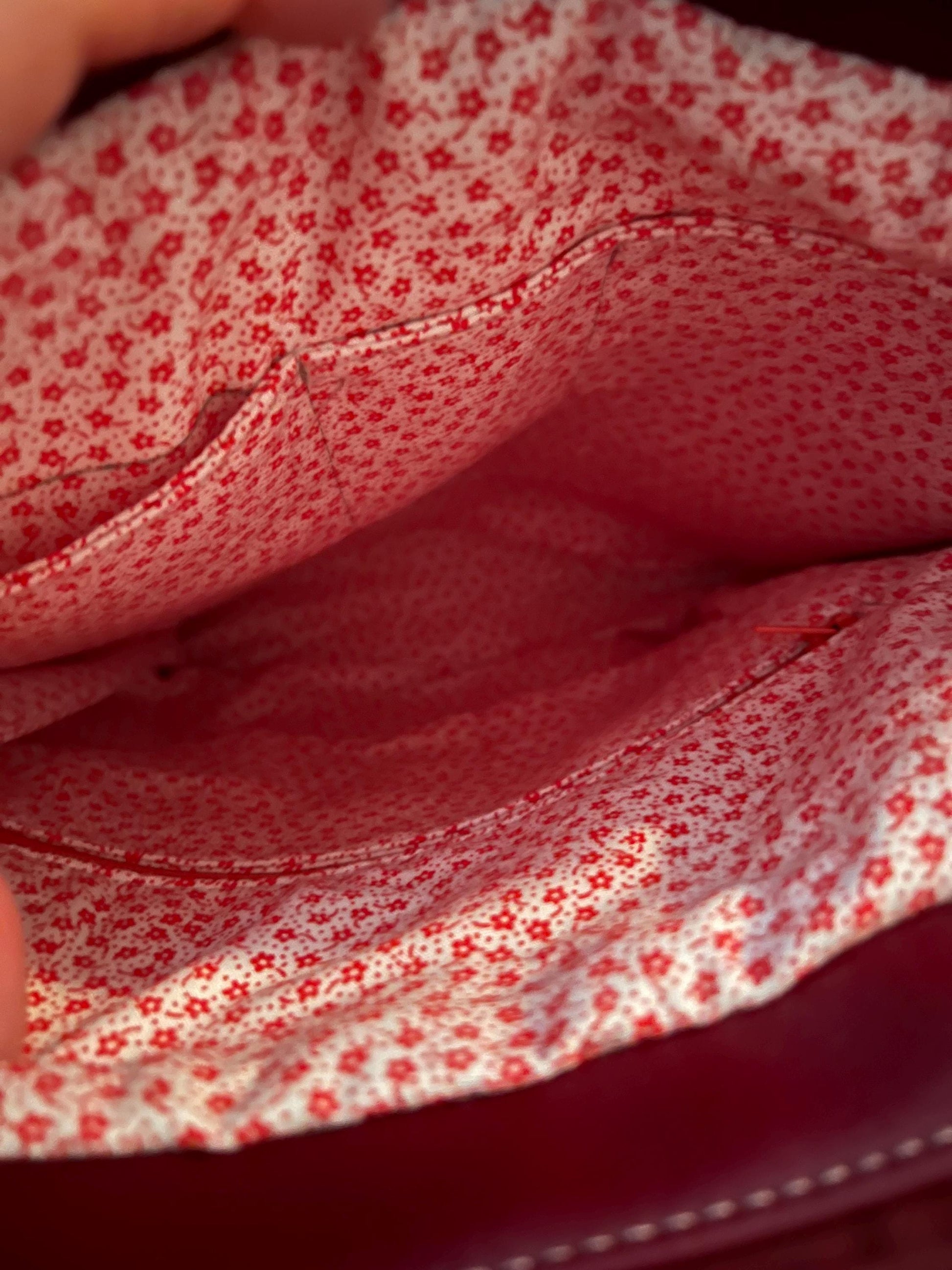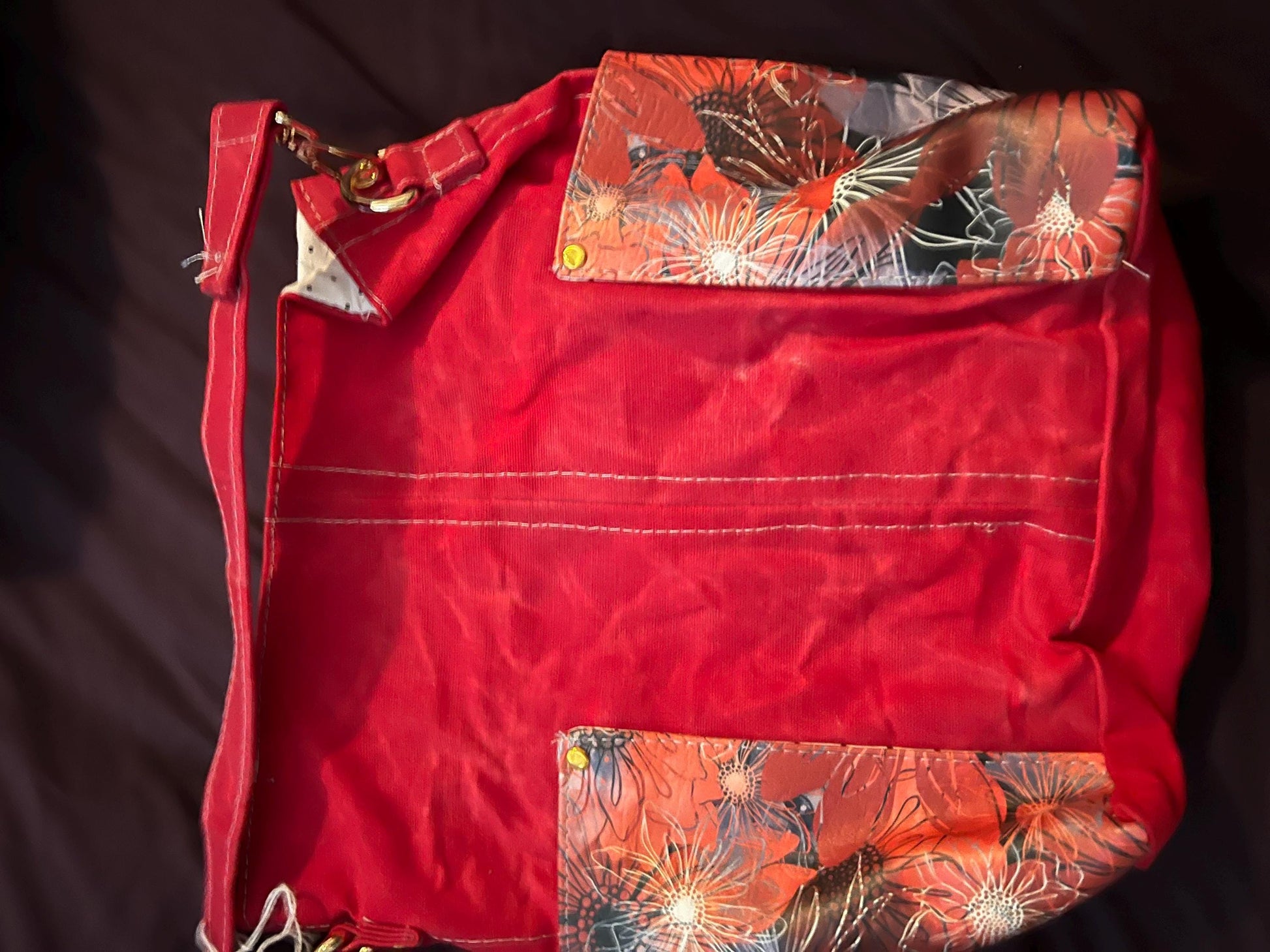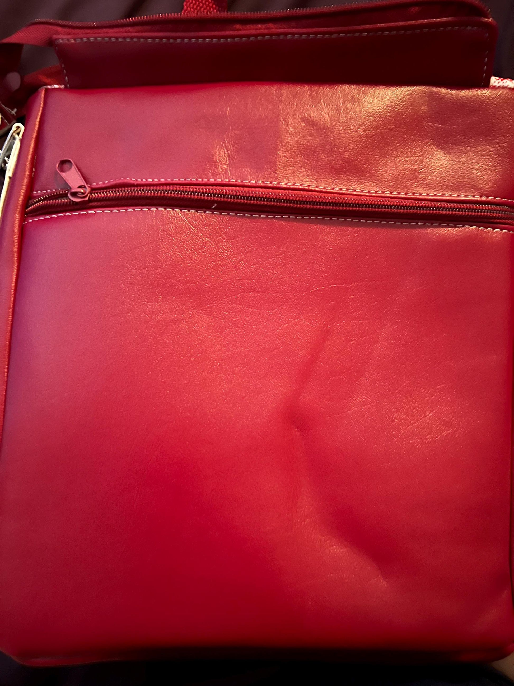 Add a bold touch to your wardrobe with this handmade red faux leather shoulder bag. Designed for over-the-shoulder or hand-carry wear, it features a sleek exterior and a surprise pop of charm with its tiny red floral interior lining. Ideal for stylish everyday use or gifting!