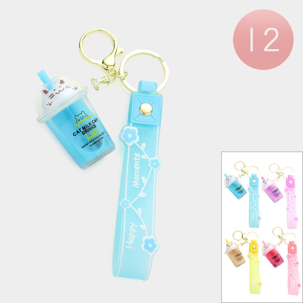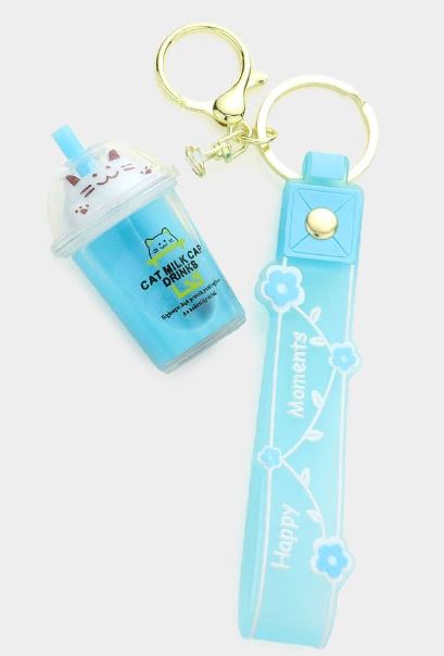 Kawaii Cat Bubble Tea Keychain Set – Milk Cap Drink Charms