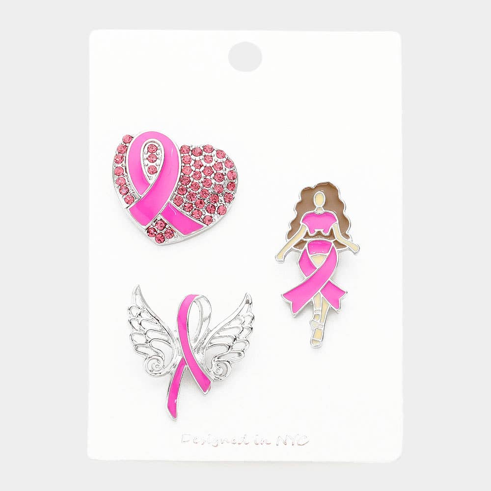 Support a cause and add meaningful flair with this 3-piece pink ribbon brooch set. This symbolic collection features a confident Afro girl, heart design, and angel wings, celebrating hope, resilience, and strength. Each brooch is lightweight, durable, and ideal for jackets, backpacks, hats, and gifting.