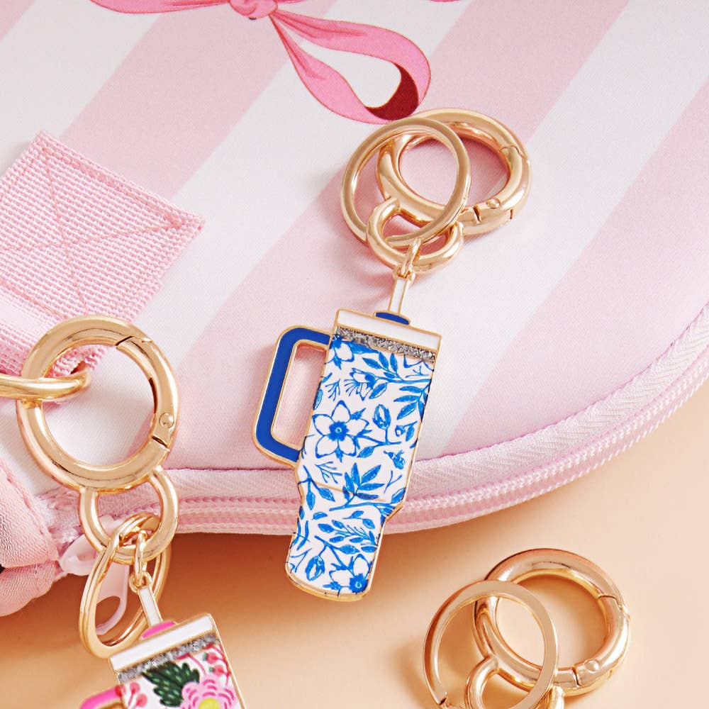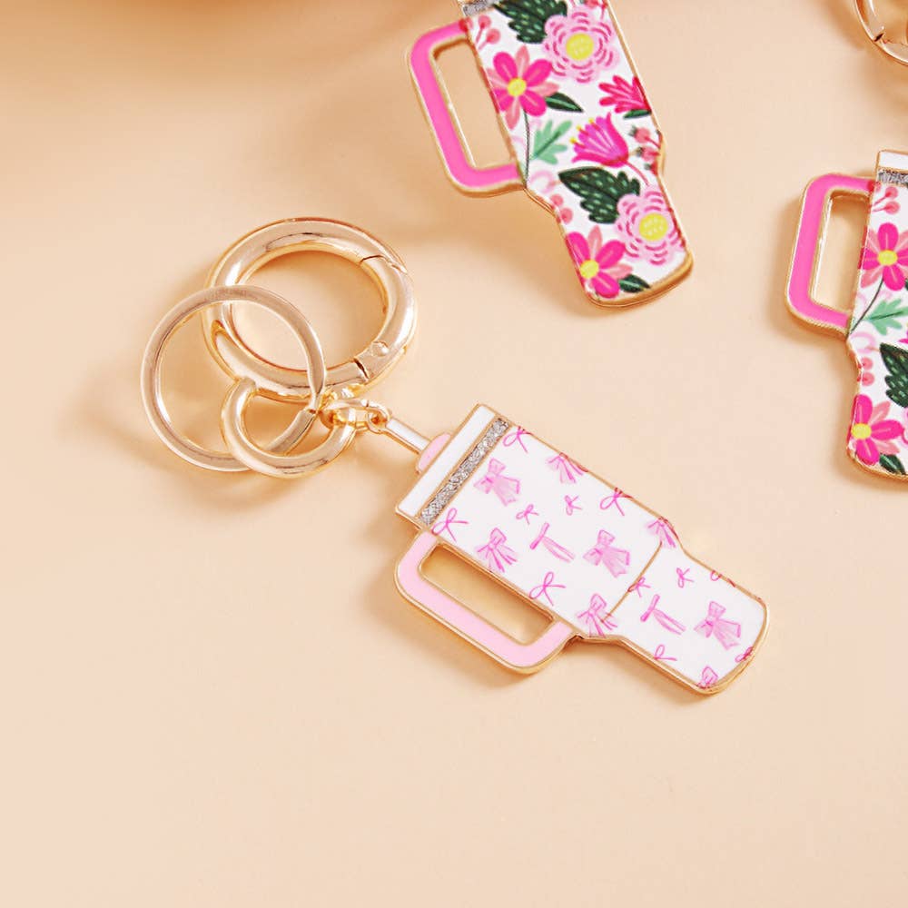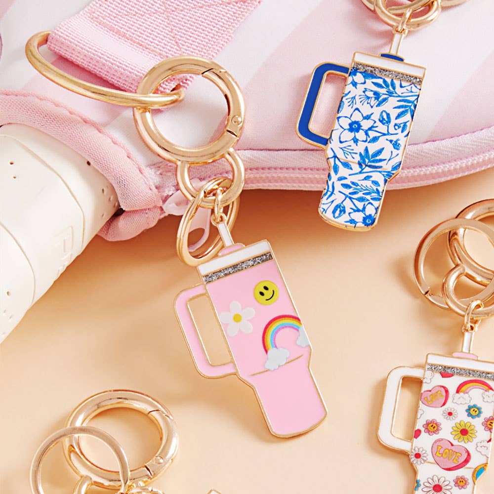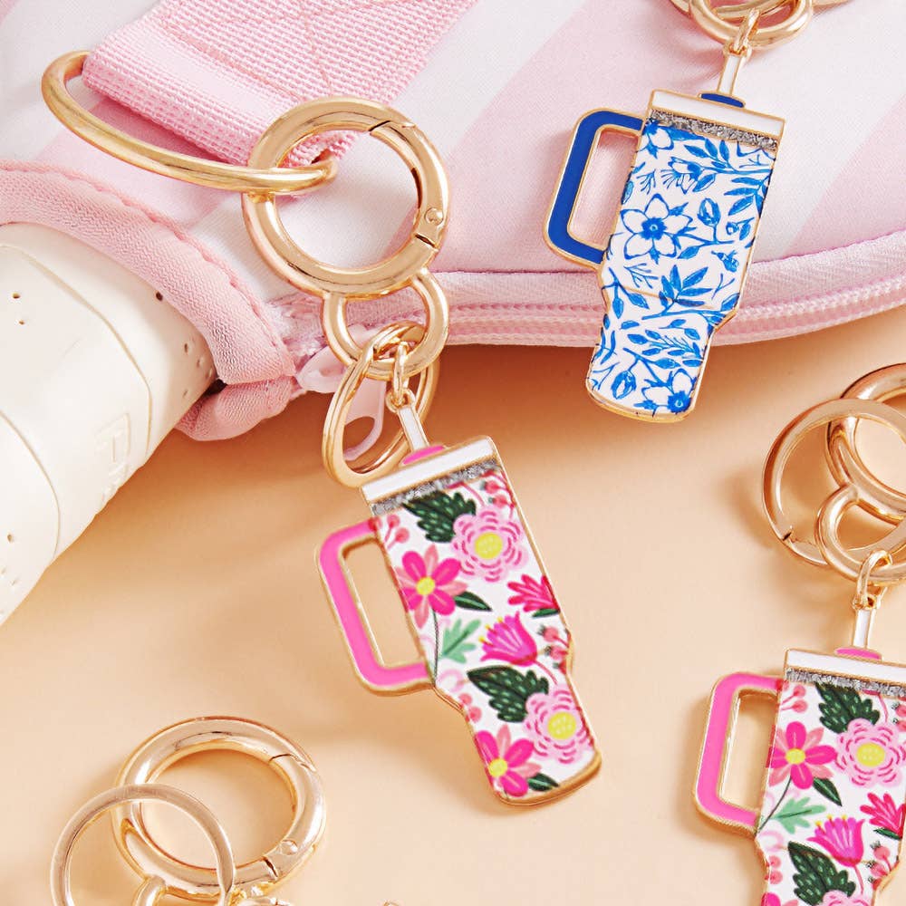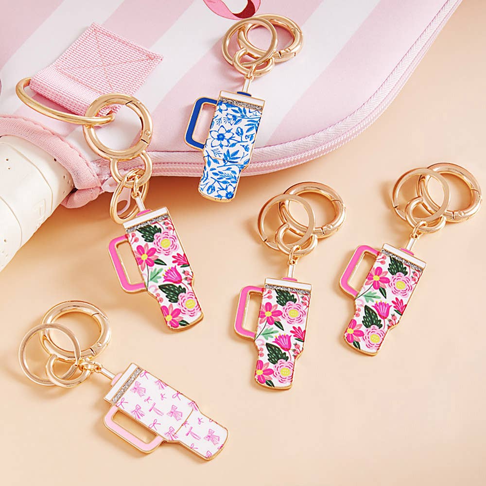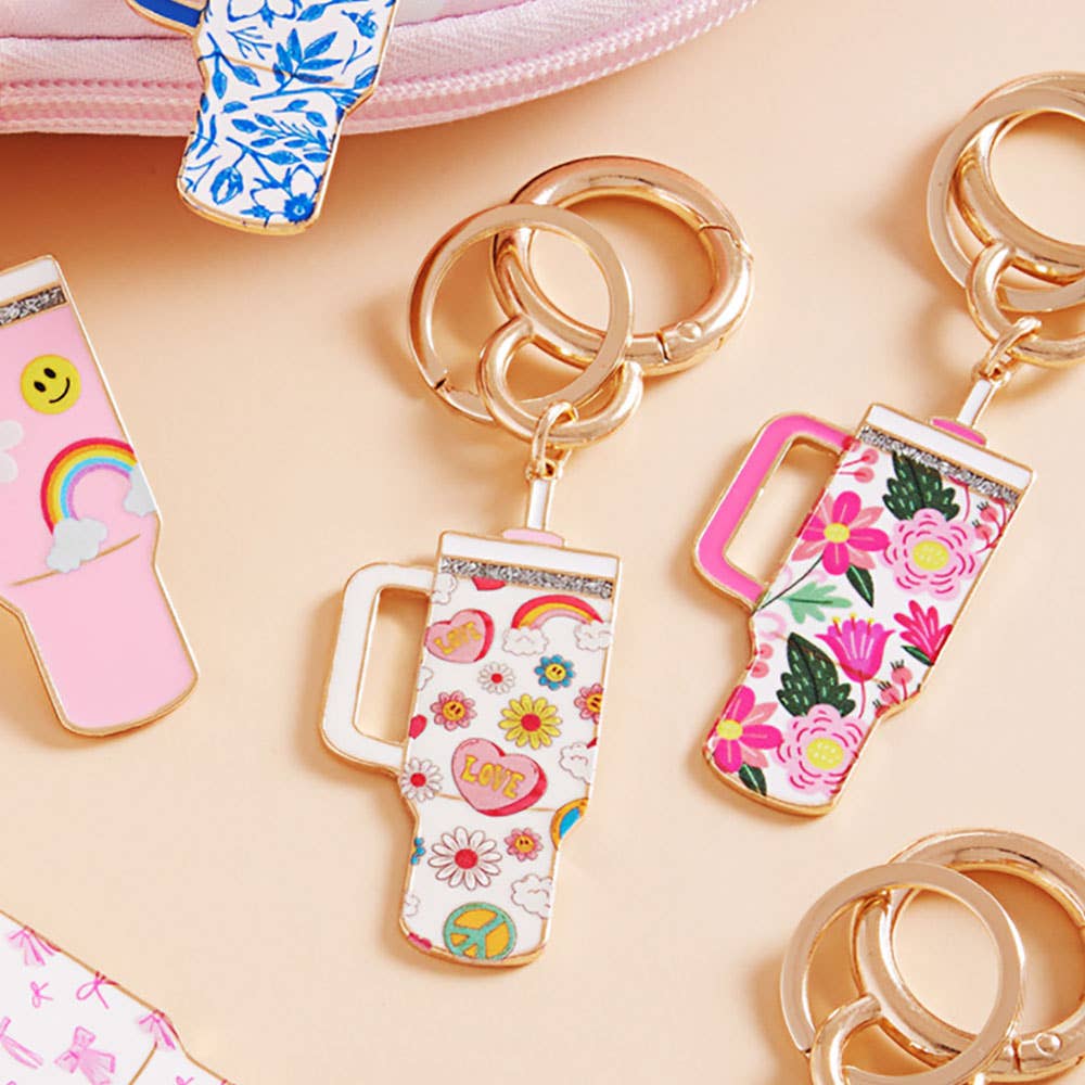 Enamel Floral Tumbler Keychain – Cute Charm with Everyday Style