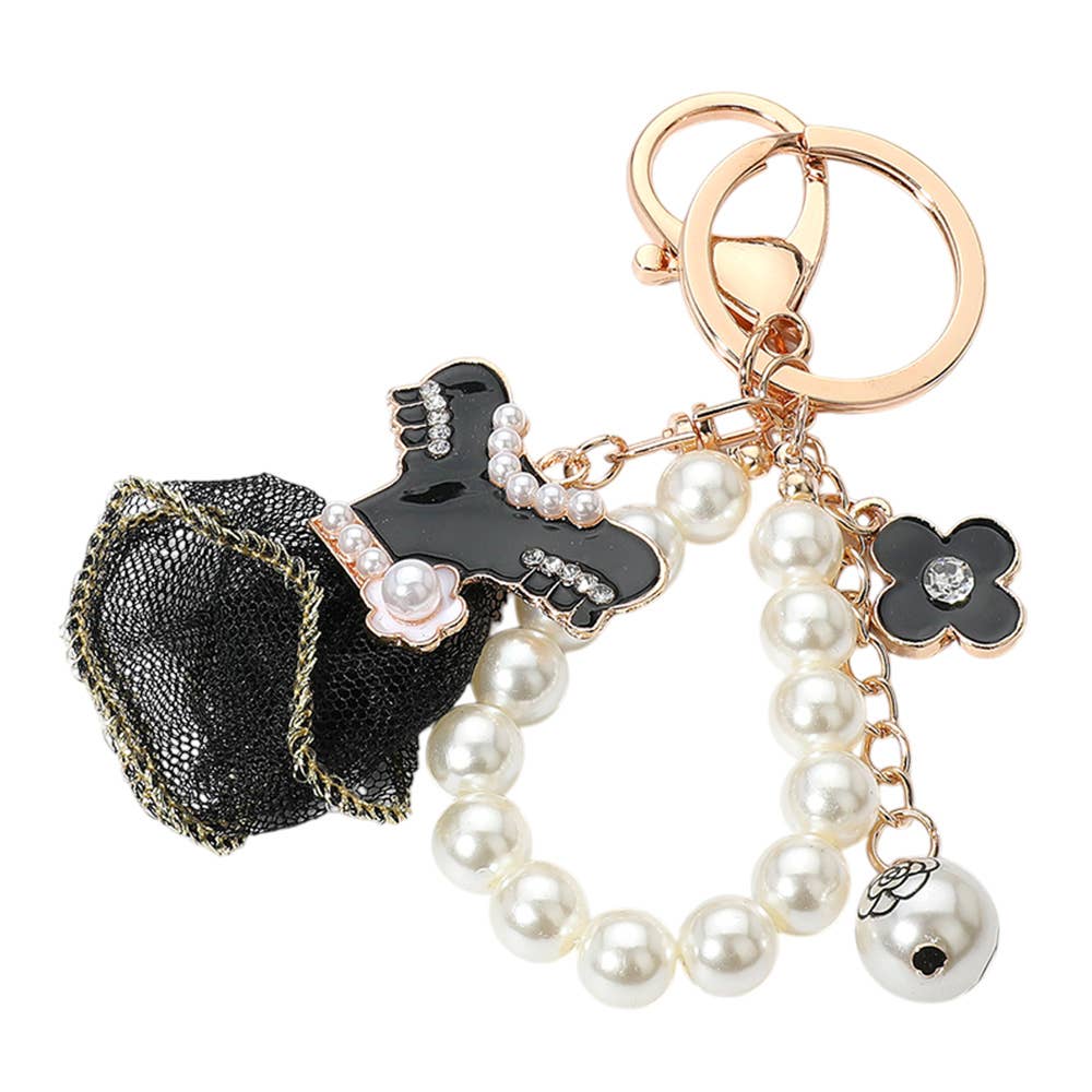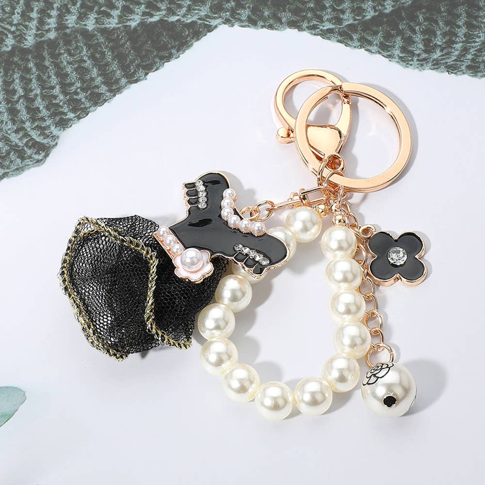 Enamel Pearl Dress Keychain – Elegant Mesh Charm for Everyday Glam